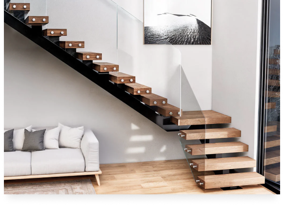 Эффект «парящих» в воздухе ступеней из массива дуба